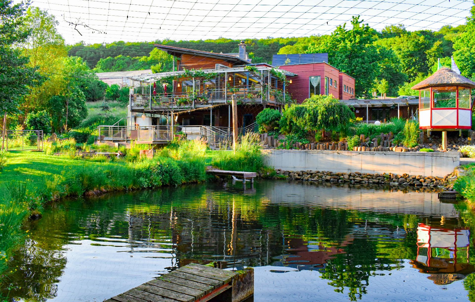 Vor unserem Lokal befinden sich vier Forellenteiche die mit dem glasklarem Quellwassers des Sonderbachs gespeist werden. Jeden Tag, werden hier die Rhönforellen frisch für sie gefangen und danach zubereitet.